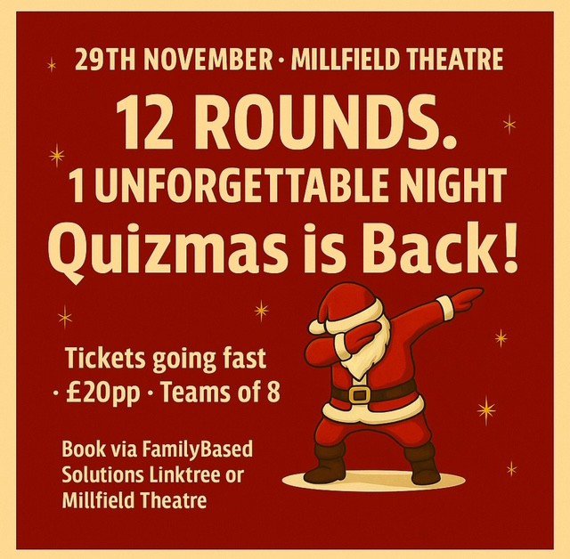 Fancy dress welcome (Santa hats, glitter and all!) After party with DJ Kyle until midnight, Prizes, laughter and big festive energy – no photo booth, just good vibes!