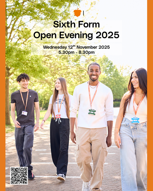 We are delighted to invite you to our Sixth Form Open Evening on Wednesday 12th November, from 5.30pm to 8.30pm. This event is a fantastic opportunity to learn more about our wide range of A level and BTEC courses, meet our dedicated teachers, and hear from current students about life in our outstanding sixth form. We are extremely proud to share that our sixth form was judged Outstanding by Ofsted in November 2024. In addition, we are currently ranked 47th among state school sixth forms in England and 106th out of 4,352 sixth forms nationwide - a reflection of our students’ exceptional achievements and the dedication of our staff. Please register your attendance using the link below. We look forward to welcoming you and sharing what makes our sixth form such an exceptional place to learn and grow.