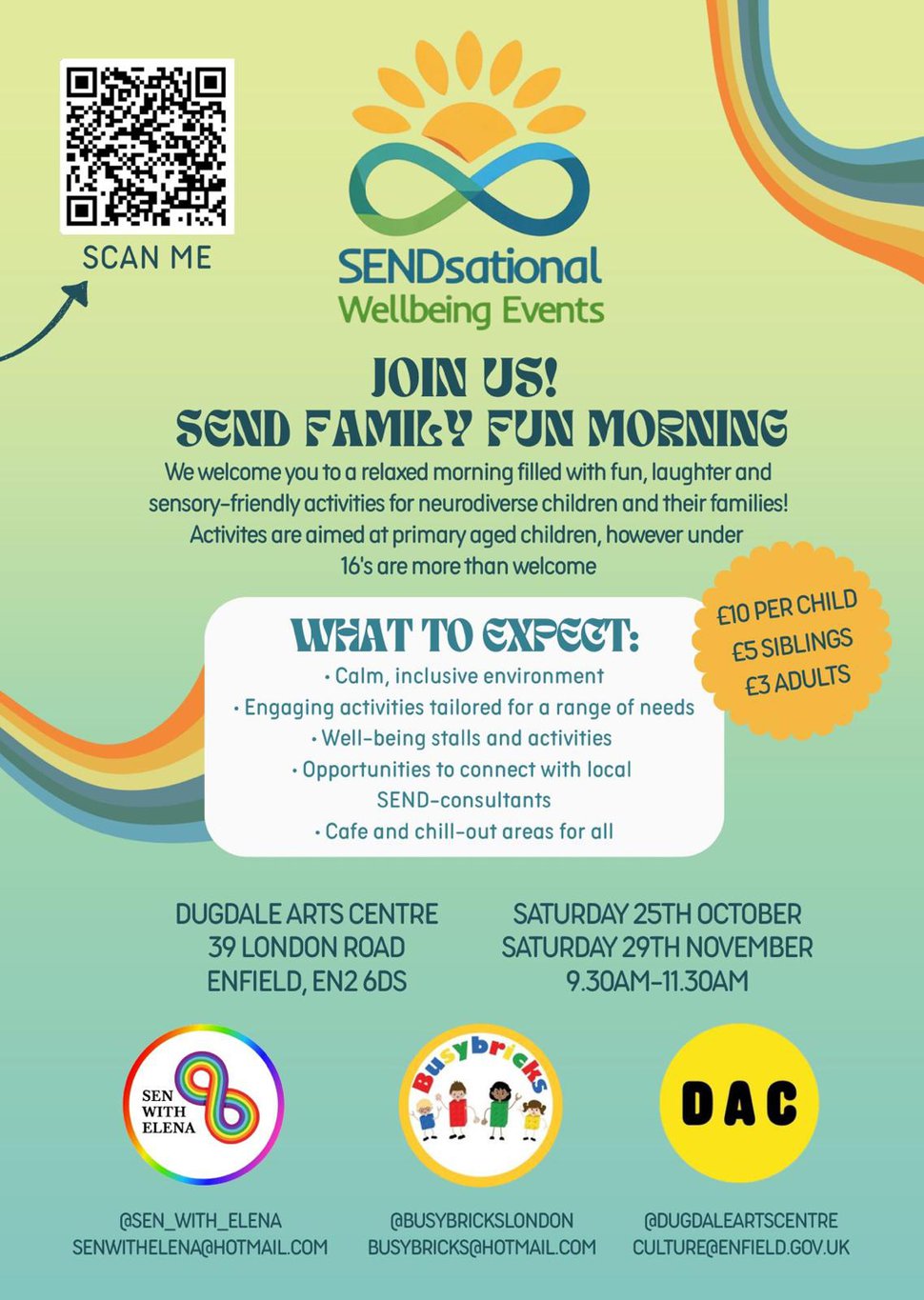 Join Us! Family Fun Morning We welcome you to a relaxed morning filled with fun, laughter, and sensory-friendly activities for neurodiverse children and their families! What to Expect: • Calm, inclusive environment • Engaging activities tailored for a range of needs • Well-being Stalls and activities • Opportunities to connect with local SEND-friendly consultants • Cafe and chill-out areas for all This is a safe space where families can feel supported, seen, and celebrated. We look forward to welcoming you all. This is a photographed event, please ask for a wristband if you do not wish to be in photos. Dates: October 25th & November 29th Ticket Pricing: Adult £3 Children £10 Siblings £5