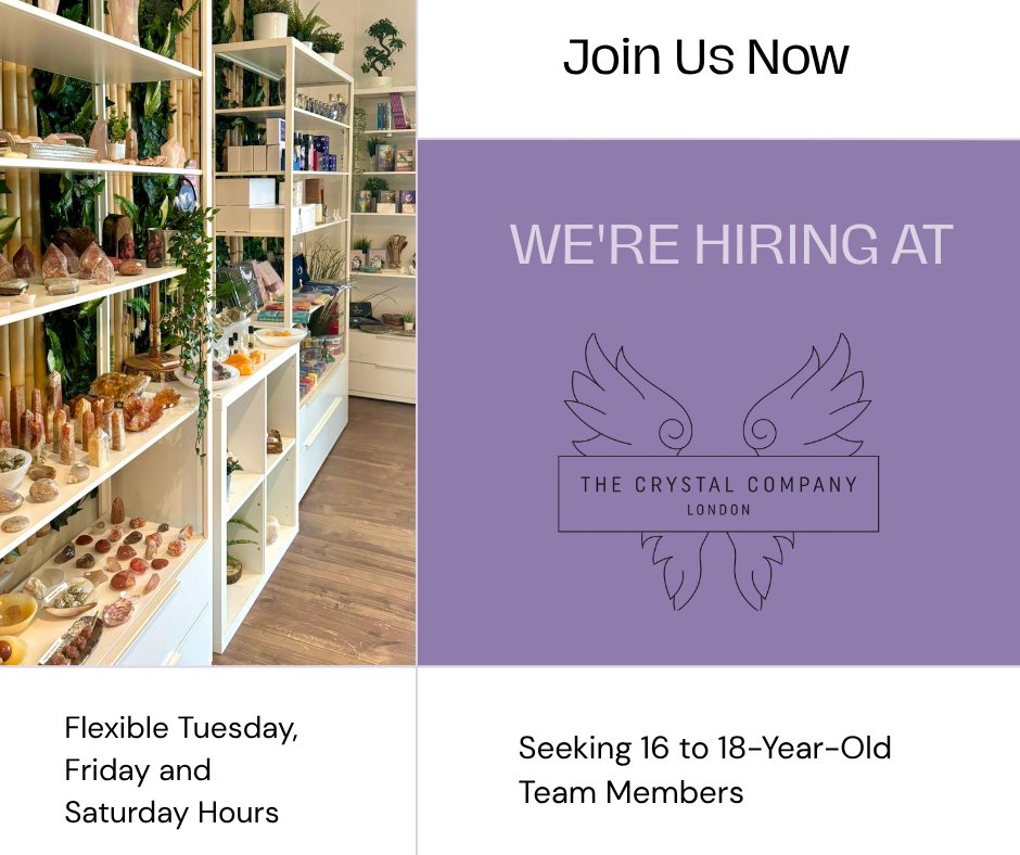 Now Hiring: Retail Team Members (London) The Crystal Company London is looking for enthusiastic individuals aged 16–18 to join our friendly, customer-focused retail team. You’ll help look after the shop and deliver great service. What you’ll do: Welcome customers, assist with product recommendations, and answer questions Process sales, handle transactions, and maintain accurate tills Keep the shop clean, organised, and visually appealing Restock shelves, price items, and manage stockroom duties Support daily store operations and contribute to a positive team environment Who we’re looking for: Aged 16–18, legally eligible to work in the UK Interest in retail and customer service Reliable, friendly, and punctual Good communication skills and a can-do attitude Flexible availability on Tuesdays, Fridays, and Saturdays What we offer: Flexible hours to fit your schedule A supportive team and hands-on training Opportunity to gain retail experience and develop customer service skills A welcoming workplace at The Crystal Company London How to apply: Send your CV to [email protected] Or pop in the shop and leave your CV in person